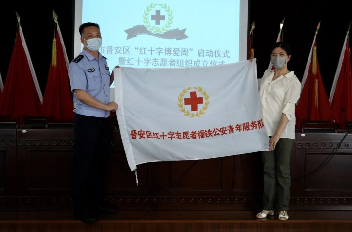 5月8日,福州市晋安区红十字会举办“红十字博爱周”启动仪式暨红十字志愿者组织成立仪式。仪式上,晋安区红十字会常务副会长黄丽华向新成立的福州市晋安区红十字曙光救援大队授牌,为晋安区红十字志愿者福铁公安青年服务队授旗。