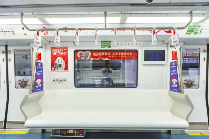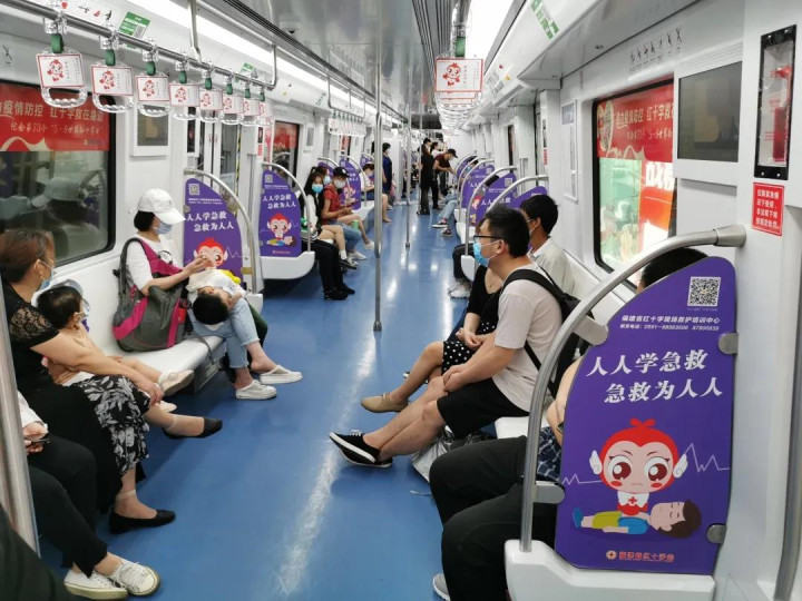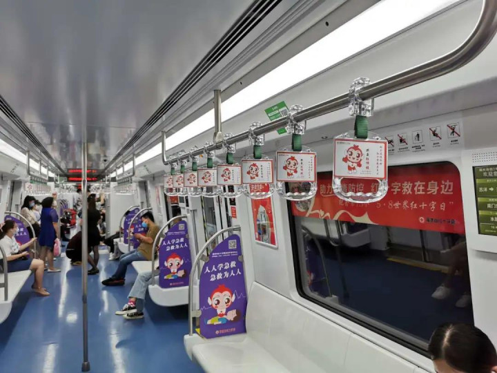 省红十字会在福州地铁一号线、二号线分别开展“品牌列车”主题宣传活动,红十字公益元素点亮了整列地铁列车。