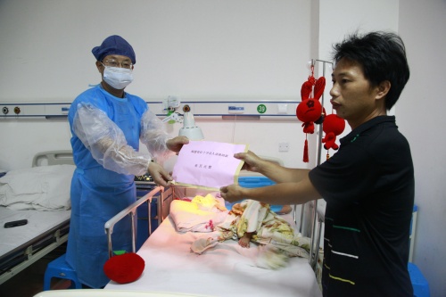 蔡康政副秘书长代表省红十字会向琪琪父亲送上3万元慰问金