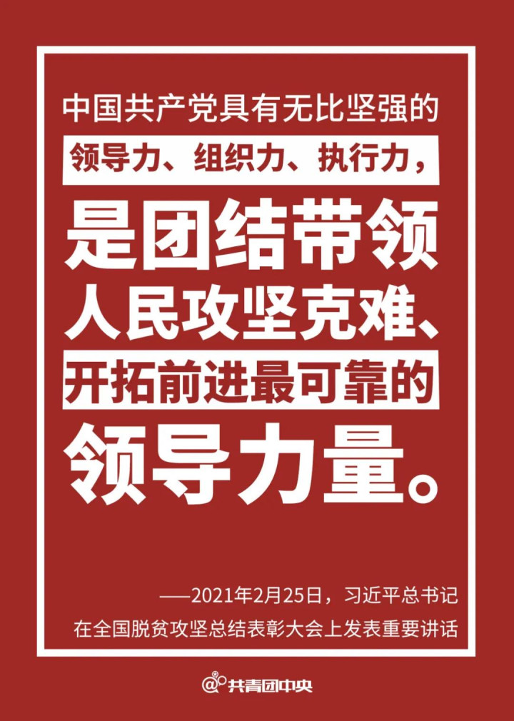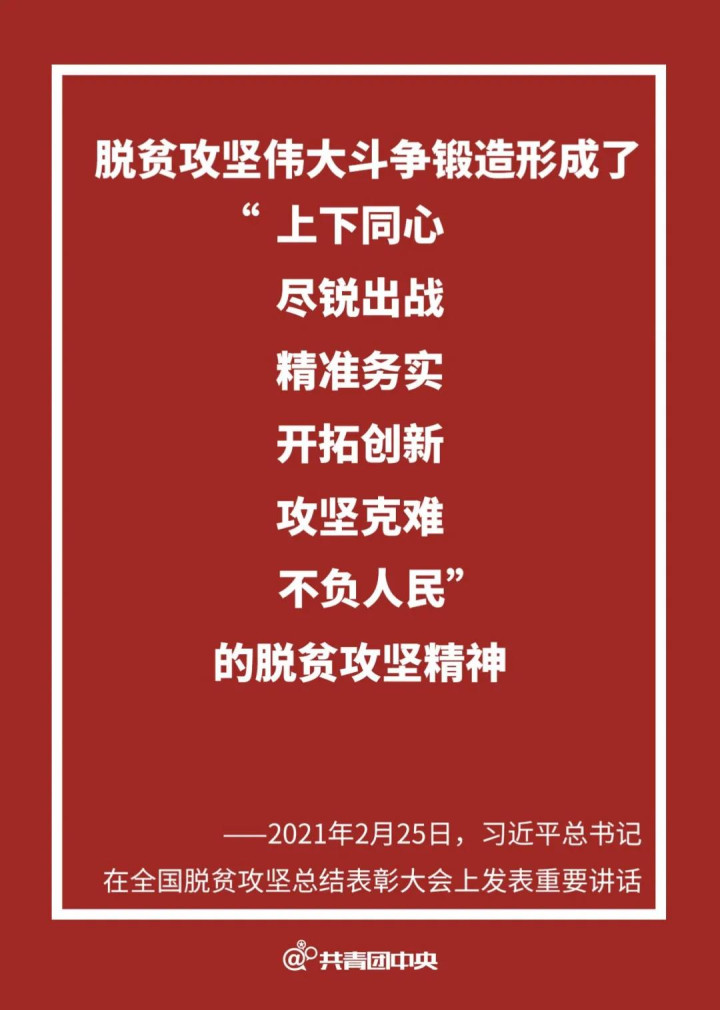 习近平表示,8年来,党中央把脱贫攻坚摆在治国理政的突出位置,把脱贫攻坚作为全面建成小康社会的底线任务,组织开展了声势浩大的脱贫攻坚人民战争。党和人民披荆斩棘、栉风沐雨,发扬钉钉子精神,敢于啃硬骨头,攻克了一个又一个贫中之贫、坚中之坚,脱贫攻坚取得了重大历史性成就。