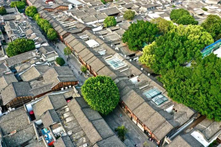 福州三坊七巷文化街区的古厝绿树(2021年3月17日摄,无人机照片)。新华社记者姜克红摄