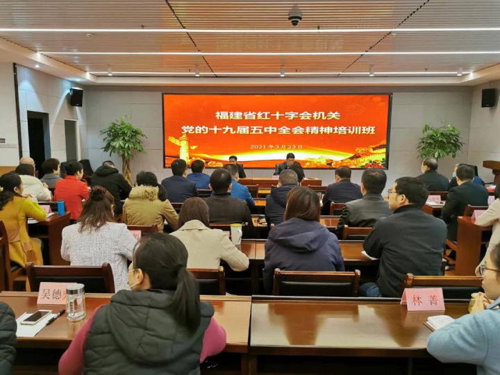 为进一步学习宣传贯彻党的十九届五中全会精神,推动再学习活动走深走实。近日,省红十字会机关举办学习贯彻党的十九届五中全会精神培训班,全体党员干部职工参加。
