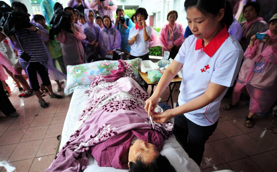 6月16日,来自台湾红十字服务队队员在进行社区居家照顾技能示范演练。当日,海峡两岸红十字居家照护与防灾救援协同演练在厦门市思明区筼筜街道育秀社区举行。活动旨在借鉴台湾红十字组织在居家照护方面较为成熟的技能培训方法,推动红十字组织在居家养老事业方面发挥独特作用。新华社记者魏培全摄