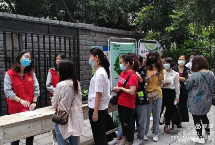 现场分享家庭养花和垃圾分类知识,发放花卉小盆栽100份。