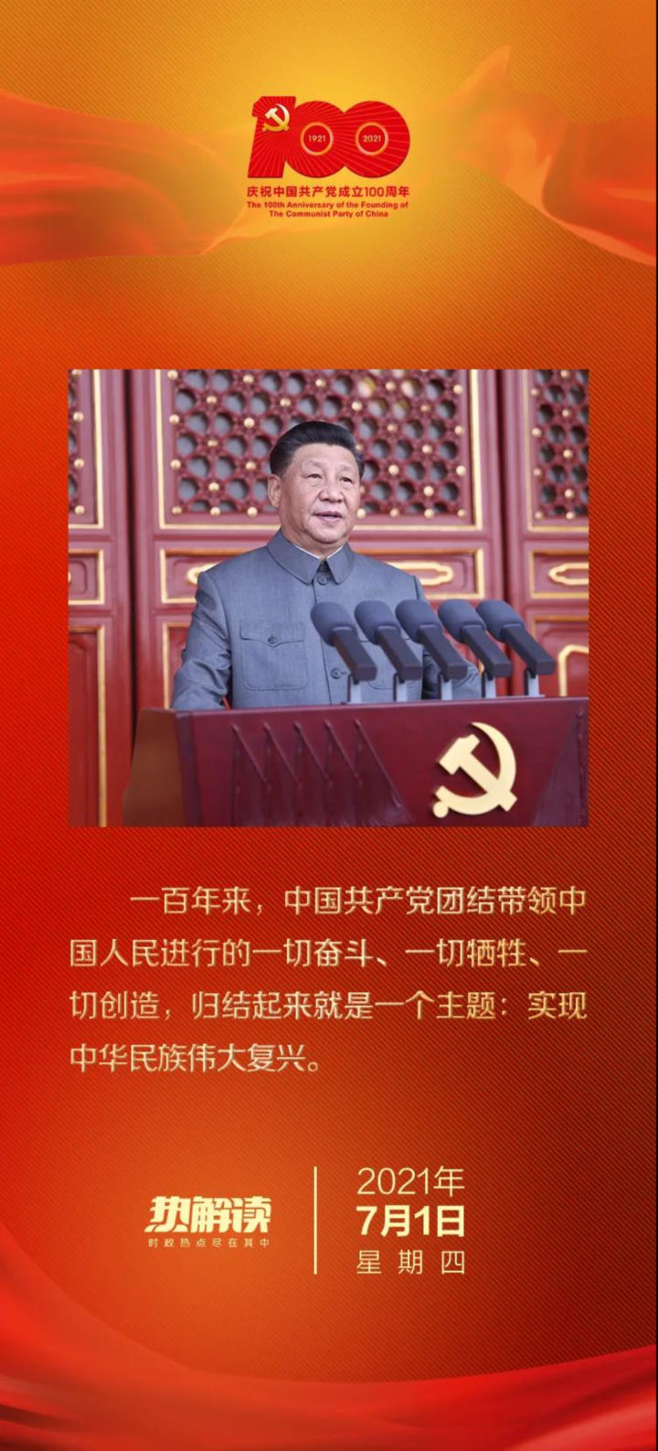 “百年答卷”主题深刻鲜明。 “一百年来,中国共产党团结带领中国人民进行的一切奋斗、一切牺牲、一切创造,归结起来就是一个主题:实现中华民族伟大复兴。”习近平总书记的精辟论述,高度概括了中国共产党百年历史。