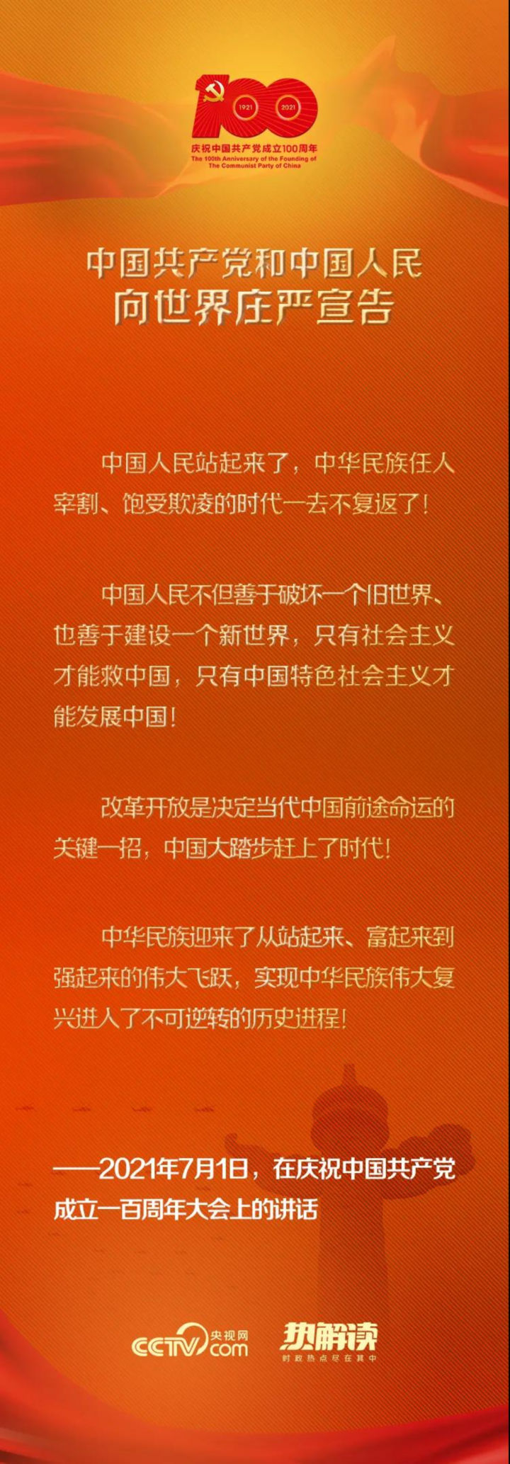 走过百年历程,回首已是沧海桑田。正如习近平总书记所说,“中国已经可以平视这个世界了”,中国人更有志气、骨气、底气向世界发出庄严宣告!