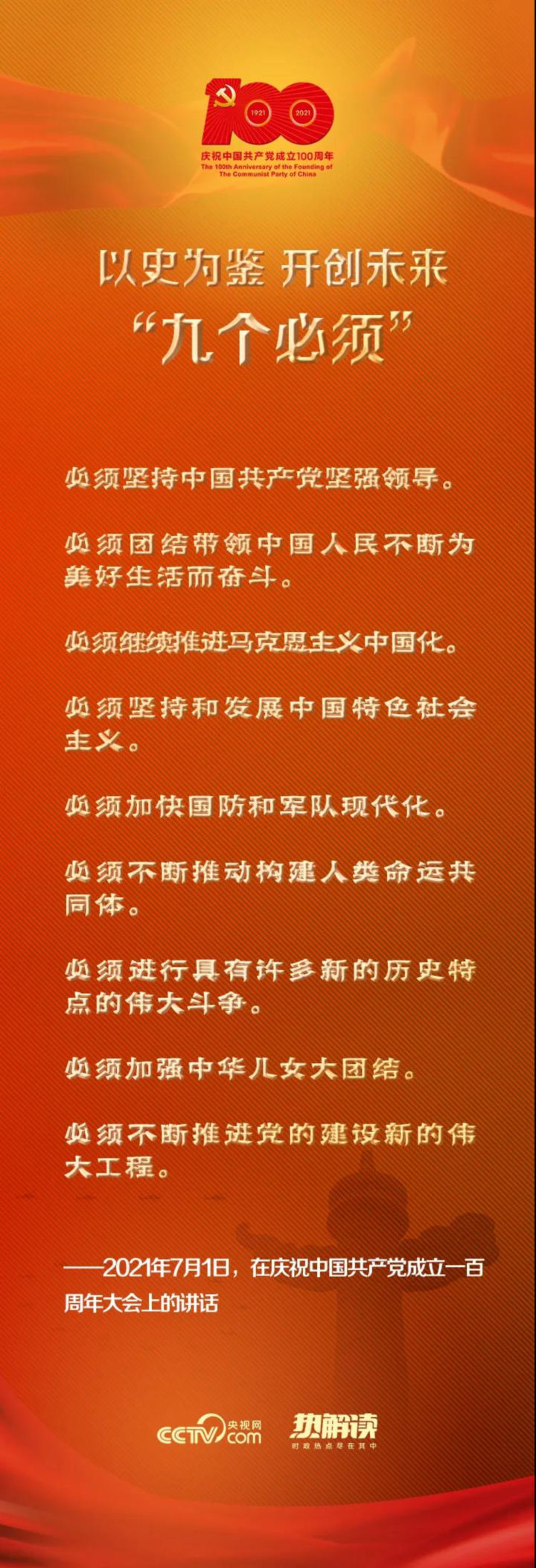 回望奋斗之路,眺望新的征程。如何以史为鉴、开创未来?习近平总书记在庆祝中国共产党成立一百周年大会上提出“九个必须”,为新的伟大征程指明前进方向。