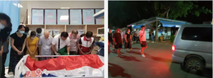 当晚8时许,南安市红十字会、梅山镇政府、厦门大学医学院工作人员和家属等人向黄笑治老人作最后告别。随后,厦门大学医学院的工作人员接走了老人的遗体。众人含泪送老人最后一程,目送载着老人遗体的车辆驶离。