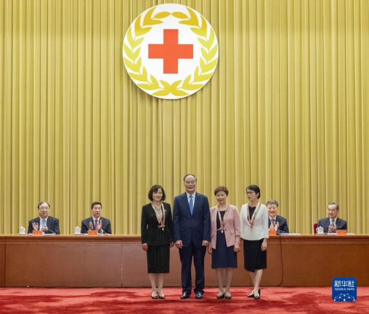 ▲9月2日,第48届南丁格尔奖颁奖大会在北京人民大会堂举行。国家副主席、中国红十字会名誉会长王岐山为中国获奖者颁奖。新华社记者 刘彬 摄