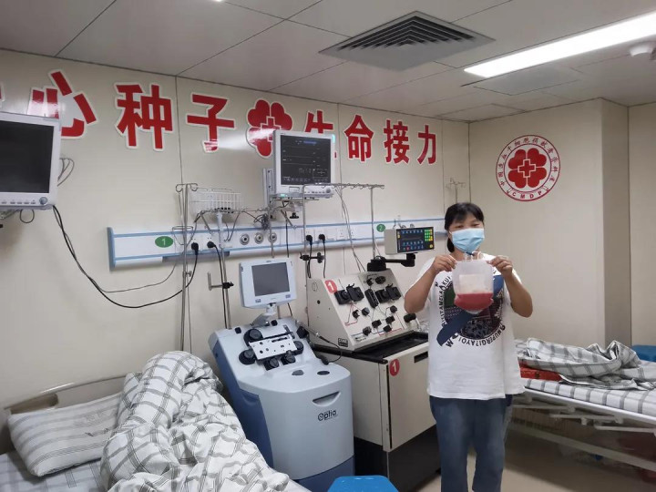 吴少红手举捐献的造血干细胞悬液