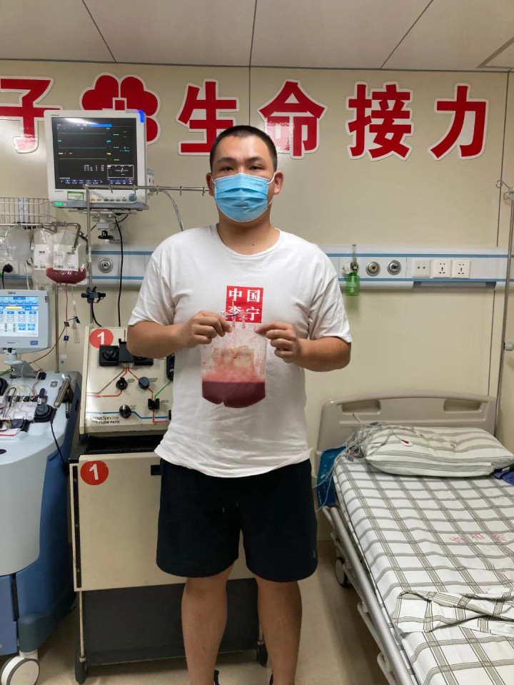 付子昱手举捐献的造血干细胞悬液