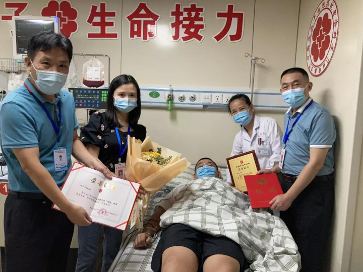 9月27日上午,在福建医科大学附属协和医院,“95后”福州小伙付子昱经过3个多小时的血液采集,成功捐献造血干细胞混悬液217毫升,成为福州市第80例非亲缘造血干细胞捐献者。