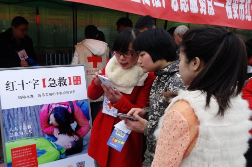 3月5日,福安市红十字会在市人民广场组织开展系列宣传活动,普及急救手机软件应用,传播急救知识。活动现场,市红十字会工作人员、志愿者向过往市民发放急救手机软件宣传彩页,现场演示软件功能,还设立宣传展板,吸引许多市民驻足观看。红十字急救掌上学堂软件得到广大市民的一致好评,纷纷表示:这个软件很便捷,简单易学,随时随地都可以学点急救知识。