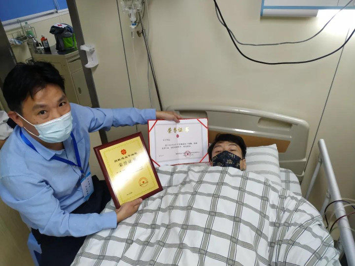 10月19日上午,在福建医科大学附属协和医院的病房中,刘宏大哥捐献出造血干细胞,为一名血液病患者送去生命的种子。