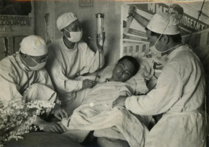 国际医防服务队以白求恩大夫为榜样,伤病员需要什么,他们就给什么。郜静霞,割开手臂上的肌肉献血抢救朝鲜伤员。没有蒸锅,队员用废弃的油桶改装;开处方用的纸张不够,用树皮替代;没有安全的手术室,队员挖掘坑道,建起能容纳1000多人的地下室;没有取暖和保暖设备,上山打柴烧炕,在漫长的冬季维持20多摄氏度的室温。