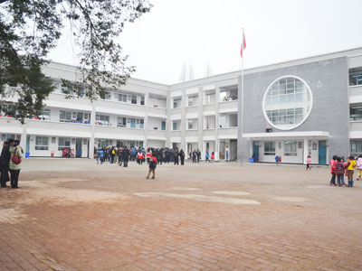 隆兴中心校的维修加固工程于2013年7月12日启动。建筑工人不分昼夜地辛勤工作,当年9月2日,校舍即投入使用。