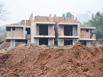该项目2013年10月已开工建设,预计2014年7月可全面完工。邱先玉指着仍在施工建设的水景家园介绍,目前,该安置点内42栋民房已有12栋建成封顶,25栋正进行主体建设,余下5栋还在抓紧建设地基。