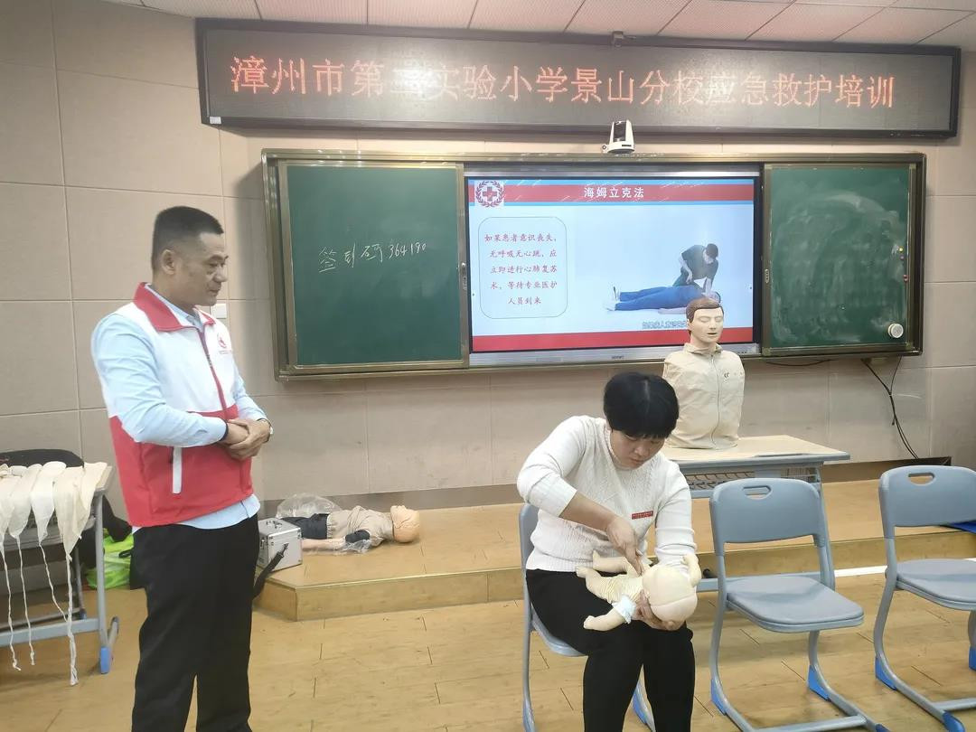12月4日至5日,龙文区红十字会走进漳州市第二实验小学景山分校为该校60名教师进行救护培训。