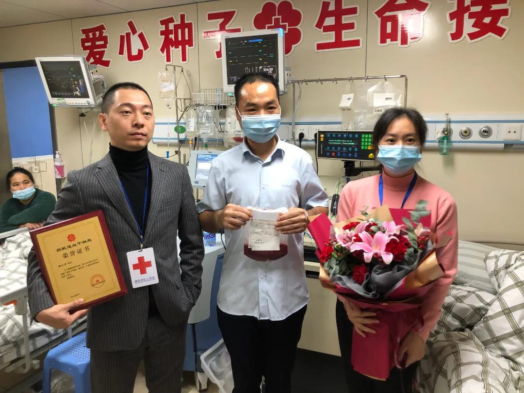 唐小平,来自福建省福州市,40岁的他从2001年开始参加无偿献血,先后在福建、上海、北京、深圳等地累计献血274次,其中全血献血总量4600毫升,成分献血总量累计达433.2治疗量。荣获了上海市无偿献血白玉兰奖、全国无偿献血特别促进奖与全国无偿献血奉献奖金奖。21年来,唐小平捐献全血从200ml转为400ml,后来还选择了捐献血小板,这次他也毅然决然地选择来捐献造血干细胞。不论在自己的家乡福州,还是出差地北京、深圳,甚至在打工的上海,都留下了唐小平的热血浓情。