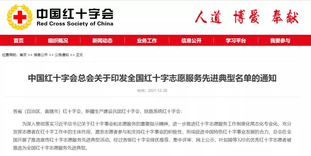 被推选为全国红十字志愿服务先进典型