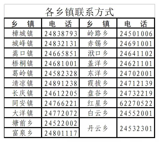 各乡镇联系方式