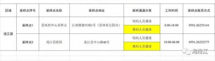 连江县核酸检测机构一览表