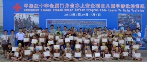 6月29日至7月8日,为期10天的中、加水上安全项目——少儿游泳暑期公益培训班在厦门举办,来自思明区、湖里区8所小学的80名学生参加此次培训活动。2008年中国红十字会总会在加拿大红十字会访问期间,探讨了双方技术合作的思路;2009年选定在中国红十字会厦门分会进行项目合作,这是中、加双方首次实现水上安全与急救技术层面的合作,在青少年中开展水上安全教育、水上伤害预防与急救;2011年厦门市红十字会在加拿大红十字会、中国红十字会总会的大力支持下,对20名教练员实现项目培训;2012年根据项目实施方案,为60名外来务工人员子女开展了首期儿童游泳公益培训班。(厦门市红十字会)