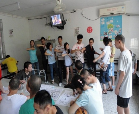 日,福州红十字义工服务团携手闽江学院海峡学院暑假社会实践第三分队到福州第二福利院,开展以振兴中国教育梦为主题的大学生义工暑期社会实践活动。大学生义工们为福利院智障儿童们开展了一系列教育帮扶活动,包括游戏互动,集中教学以及一对一开展计算、唱歌、绘画、汉字书写、手语技能等课程,与他们耐心交流,并进行心理辅导。