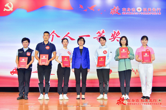 本次大赛以“‘救’在身边,机关先行”为主题,来自各个省直机关单位的40支代表队80名红十字救护员参加比赛,比拼成人心肺复苏操作及AED使用项目。经过激烈角逐, 最终评选出个人一、二、三等奖40名,团体一、二、三等奖24名,组织奖16名。省应急管理厅、省市场监督管理局、省总工会、福州海关荣获团体一等奖;何梅鸿等6名选手荣获个人一等奖。
