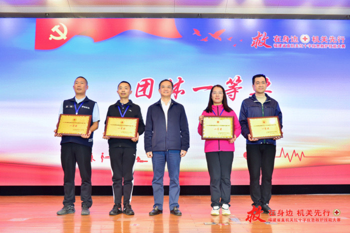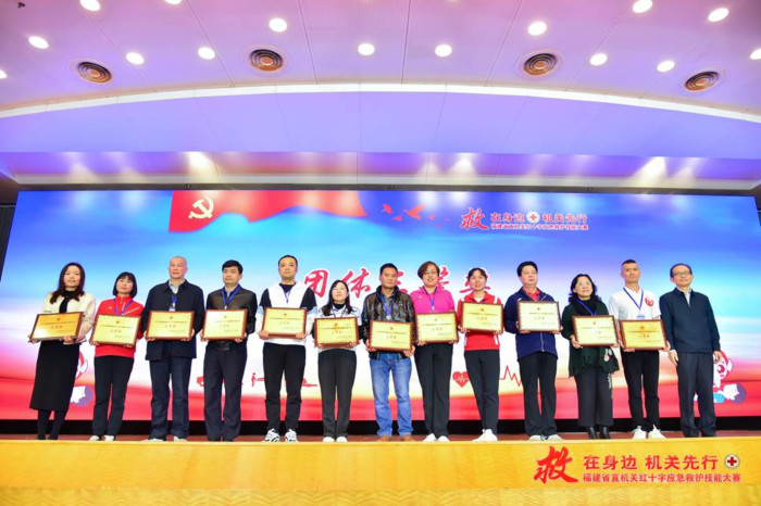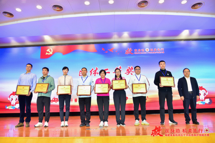 12月5日,中共福建省委省直机关工委、福建省红十字会联合举办的福建省直机关红十字应急救护技能大赛圆满落下帷幕。省红十字会党组书记何明华、分管日常工作的副会长黄玲,省委省直机关工委副书记吴镇江,工委委员、省直工会工委主席陈雁,省红十字会党组成员、专职副会长徐祥,省红十字会党总支专职副书记、二级巡视员陆芳红等领导出席大赛并为获奖团队和个人颁奖。