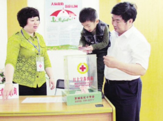 4月25日,王开忠与外孙高阳一同来到漳州市芗城区红十字会,向雅安地震灾区捐款1万元。今年59岁的王开忠是漳州市政协委员,早年曾当过兵,退伍后在漳州经营一家瓷砖店。从唐山大地震到汶川大地震,再到这次的雅安地震,每一次灾难发生后他都积极向地震灾区捐款。以前我困难时,也得到别人的帮助,如今,一方有难,我们也要奉献,懂得感恩。王开忠说,带着孩子来捐款,是要让孩子从小就懂得爱,懂得感恩,懂得帮助别人。(漳州市芗城区红十字会)