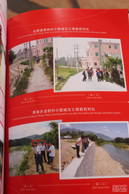 老大爷对爱心志愿者的帮助表示感谢 省红十字会爱心之旅活动走进漳浦 春光村新修的博爱路 村里挂着芬兰红十字会援助春光村减灾宣传板 古雷镇西林村和南浦乡龙桥村小型减灾工程前后对比