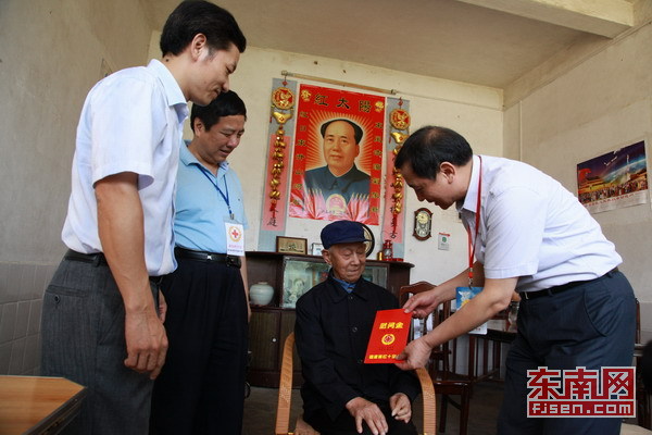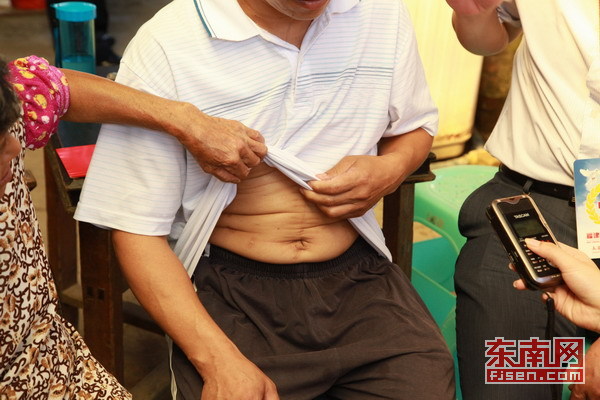 王建设做手术的伤口 东南网6月8日讯(本网见习记者 倪羽)今天是高考考试的最后一天,大病救助,爱行八闽爱心之旅活动的成员来到了龙岩市新罗区,看望了身患胃癌的患者王建设,给他和正在参加高考的儿子带去了慰问金和生活必需品。 王建设祖籍四川,现住在龙岩市新罗区。2011年5月27日,他被诊断为胃癌,高昂的医药费花掉了家里的所有积蓄。更不幸的是,在他生病期间,妻子因为不堪生活重负选择了自杀。现在家里还有年迈的岳母和在读高三的儿子需要抚养照顾。儿子王梁今天正在参加高考。 因为王梁高考,我特意从四川赶来照顾他的,已经来了两个月了,孩子非常乖非常懂事。周世芬是王梁的姨姨。她告诉记者,为了让孩子能够专心读书,她特意从四川过来照顾他,给他做饭洗衣服,希望他高考能够考出好成绩。 红十字的手温暖患者的心 因为经济困难,王建设一家现在只能住在城郊的一处果园里,目前他的治疗费已经用去24多万元,负债累累。我现在住在果园里,帮人家看果园,不过果园现在的经营状况也不好,工资也比较低。虽然家庭状况并不好,但是王建设依然很乐观,接受过几次化疗后,他的病情也有比较大的好转。 据介绍,王建设属于福建省红十字会的大病救助对象,前不久领到了两万多元的大病救助资金。对社会的帮助,王建设也是心怀感恩,同时希望自己的孩子今后也有一颗感恩的心。这真的是及时雨,刚好我的儿子马上就要上大学了,我希望儿子今后有一颗感恩的心,做一个对社会有用的人。如果没有得到社会的帮助,我早就倒下去了。 爱心之旅团体实地考察了上杭古田红十字博爱卫生院 爱心志愿者们看望失散老红军黄善养 作为一项由政府倡导,社会各界爱心人士参与的民生工程,大病救助在龙岩地区为许多家庭困难的大病患者提供救助。据了解,载止2012年5月16日,龙岩市获得省级大病救助有614人,救助金额1027.26904万元。2011年全市共受理市级大病救助对象133人,载止2012年3月31日,符合资助条件88人,发放救助金额60.626638万元。 爱心志愿者们看望复员军人谢贡瑞 爱心志愿者们给结肠癌患者苏柏金送去慰问金 当天,爱心之旅活动团体还看望了去年接受大病救助的结肠癌患者苏柏金,向他介绍今年大病救助的政策调整情况。同时实地考察了上杭古田红十字博爱卫生院,并到失散老红军黄善养、复员军人谢贡瑞的家中进行慰问。