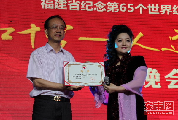 晚会现场还对2011年以来为我省红十字人道救助事业做出突出贡献的企业和个人进行表彰,并为2011年纪念福建省红十字组织建会100周年文学征文、绘画、书法、摄影作品大赛中的获奖代表颁奖。