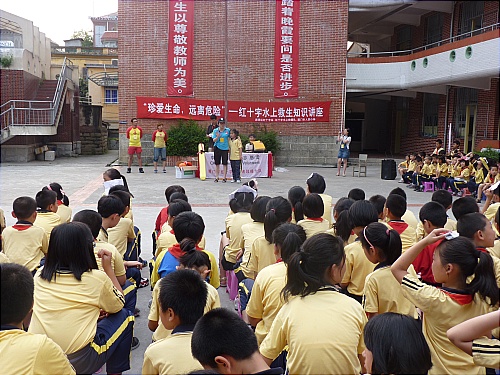 鉴于暑假是学生安全事故多发时节,从五·八红十字博爱周开始,红十字水上救援队志愿者们陆续走进厦门市思明区各中小学,以珍爱生命,远离危险为主题举办多场水上救生知识讲座,普及水上应急救护知识,努力形成校园安全知识教育齐抓共管、安全自救能力共同提升的良好局面。志愿者们用生动形象的真实故事、浅显易懂的语言向学生们讲述了游泳时常见问题的处理技巧,并通过模拟溺水救护现场,进一步加强学生们对溺水救护技巧的直观认识,在寓教于乐中使大家形象掌握水上安全知识及基本救护技巧。思明区红十字会将在暑期来临前的几个月时间里在校园内持续开展水上救生知识普及活动,努力使广大青少年度过一个安全、文明、健康的暑假。