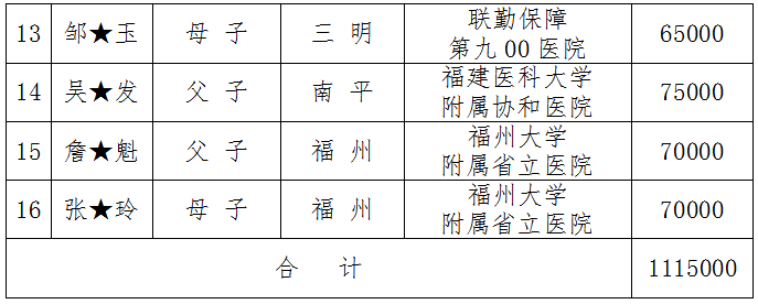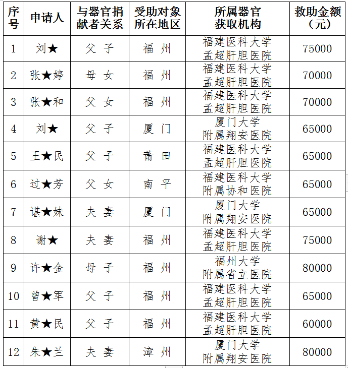 福建省人体器官捐献者困难家庭2025年度8月救助情况