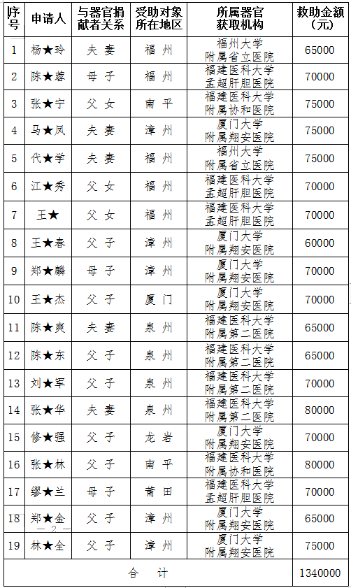 2025年9月1日至9月30日,省红十字会受理人体器官捐献者家庭困难人道救助申请19例,实施救助19例,发放救助款共计134万元整。现将具体名单公布如下: