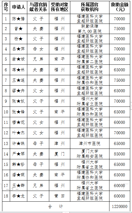 福建省人体器官捐献者困难家庭2025年度12月救助情况