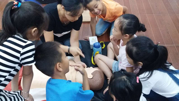 9月1日中午,仓山区红十字应急救护志愿服务队趁着午休时间,来到银桥社区为刚上一年级的小朋友和家长们上了一堂生动的应急救护讲座。课上由专业老师进行系统的理论培训,结合互动式教学,现场讲解示范具体的操作过程,通过PPT和实体示范,教授心肺复苏术和基本伤口包扎。理论学习之后进行实际操作,家长们现场演习心肺复苏救护过程,由专业老师从旁指导点评。