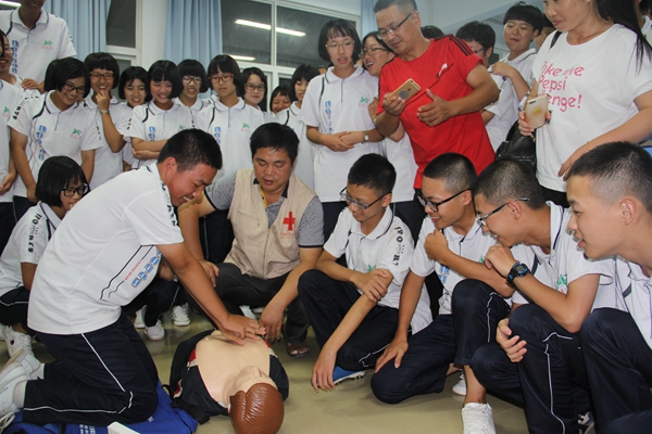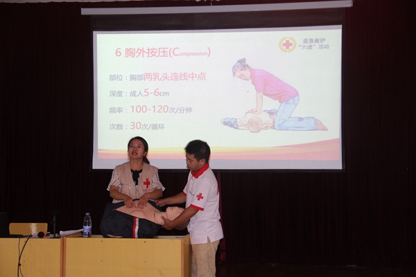8月24日-27日,县红十字会组织5名应急救护培训师,为800多名参加军训的高一新生开展红十字应急救护技能培训。连续4天,应急救护师每天晚上在两个教室同时向新生授课,普及心肺复苏术、气道梗阻等应急救护知识和操作技能。