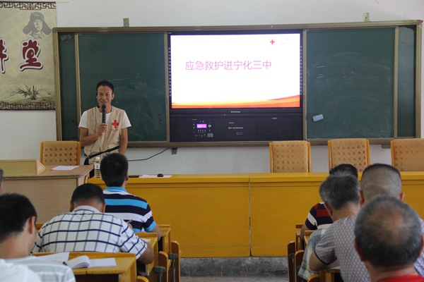 8月30日,县红十字会组织1名应急救护培训师,为宁化三中50余名教师开展为期半天的应急救护培训。