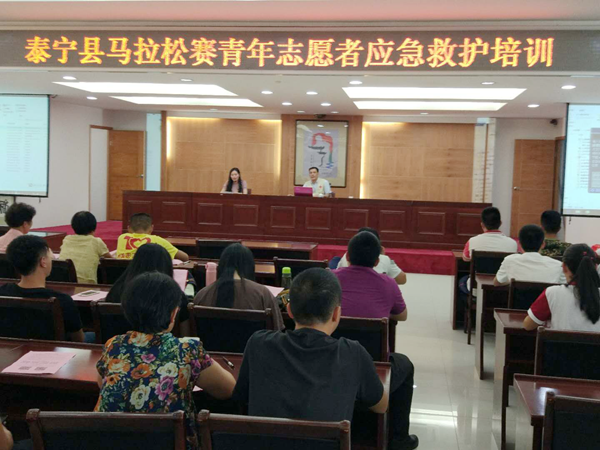 10月15日,泰宁县举办世界华人马拉松赛。为弘扬人道、博爱、奉献的红十字会精神,有效地保护马拉松赛事参赛人员的生命与健康,推进应急救护培训的公众普及,进一步推进红十字会事业的发展,扩大红十字会影响。10月11日,泰宁县红十字会联合团县委,开展对马拉松青年志愿者及赛事工作人员进行应急救护培训,为大赛安全做好保障。本次培训参训人员共55人,培训的主要内容是心肺复苏及气道梗阻急救。