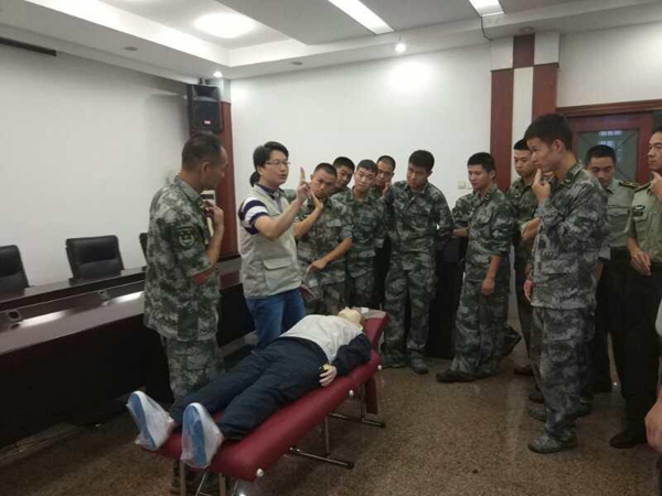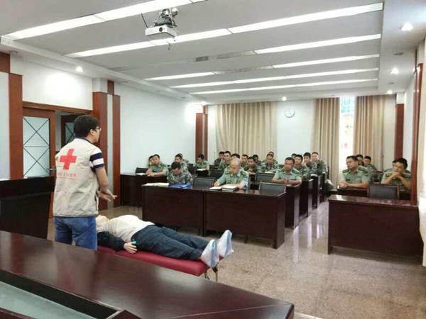 9月29日下午,仓山区红十字应急救护志愿服务队来到福州预备役高炮团营区,为二十余名官兵带去了一堂生动的应急救护讲座。课上由专业老师进行系统的理论培训,结合互动式教学,现场讲解示范具体的操作过程,通过PPT和实体示范,教授心肺复苏术和基本伤口包扎。理论学习之后进行实际操作,官兵们现场演习心肺复苏救护过程,由专业老师从旁指导点评。