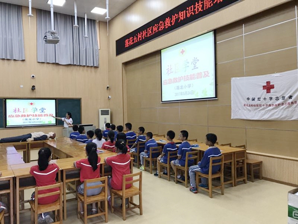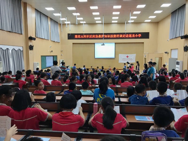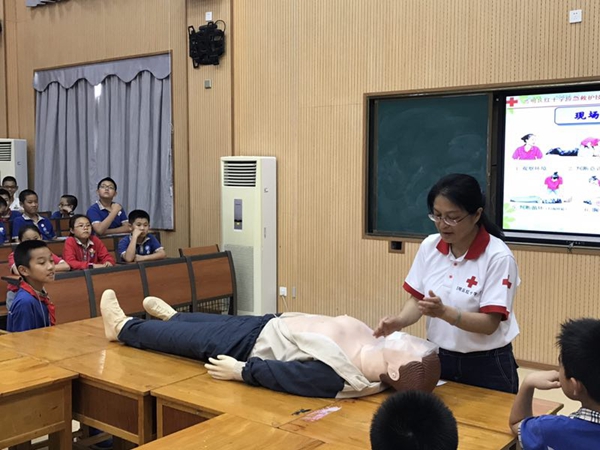 5月24日下午,思明区莲花五村社区开展了红十字应急救护知识普及走进莲龙小学。社区邀请了区红十字会讲师易琳为辖内的莲龙小学师生以生动的语言、真实的案例,采用互动方式围绕突发事件,分别就急救重要性、基础知识、心肺复苏技术及常见病的预防和处置方法进行了讲解和示范,尤其对如何在事故发生第一时间采取正确、有效的应急措施,最大限度的在医生和救护人员到来之前协助挽救生命作了详尽讲解。并就心肺复苏、创伤救护等基本技能与高年级孩子们进行了模拟操作和示范。