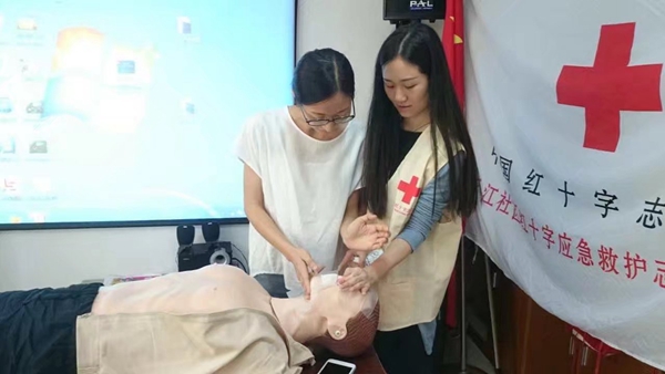 沈老师在课上通过理论与实际操作的相结合,详细讲解了在平常生活、工作中遇到心猝时的应急救护,邀请学员们参与进来,使大家对应急救护知识有进一步的了解,并熟练掌握应急救护的要领。