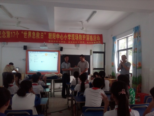 9月6日上午,漳州市龙文区红十字会联合龙文区教育局在朝阳中心小学举办纪念第17个世界急救日现场救护演练活动。龙文区红十字会专门邀请漳州市红十字会现场救护培训专业讲师杨元勋为老师和同学们讲解现场救护的重要性、心肺复苏与外伤止血包扎技术及一些日常应急处理,指导师生们进行现场心肺复苏与外伤止血包扎技术演练;并向朝阳中心小学捐赠急救箱、学生生命安全读本等急救用品与书籍。