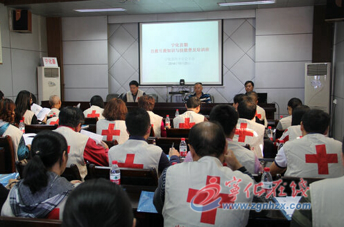 上午,县红十字会、县医院、县疾控中心联合举办的首期自救互救知识与技能普及培训班开班。县医院急诊科医生俞长廷担任培训班授课老师,对心肺复苏术、溺水的现场救护、气道阻塞急救法以及交通事故、烧伤和急性中毒等突发伤害事故的自救互救知识进行了系统讲解和模拟示范,同时,要求参加培训的人员依次对模拟人进行心肺复苏实际操作,直到掌握方法为止。来自济村的巫英笺,今年73岁,是最年长的志愿者,他说:这样的培训对别人、对自己都有好处,特别是乡下,很少有这类知识,等我学会了也可以帮助他人。