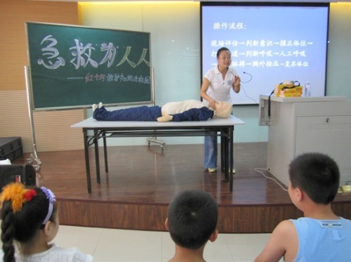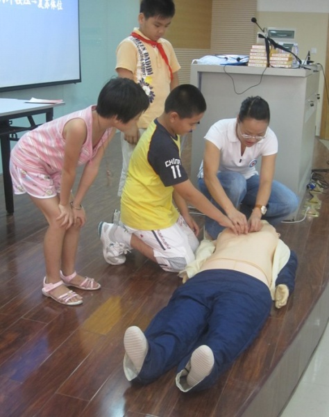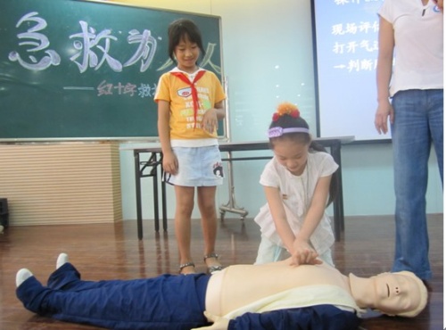 为纪念2010年世界急救日,让更多的人掌握急救技能技巧,在事发现场挽救生命和降低伤害程度。 9月8日下午,鼓楼区红十字会在湖前小学,开展了以急救为人人为主题的红十字救护知识进校园活动,为孩子们送去了《红十字知识宣传手册》读本。红十字志愿者福州十八中陈金珠老师为孩子们讲解救护知识和技能,让孩子们学会在紧急情况下如何判断、如何呼救、如何施救。现场还开展了救护知识有奖问答、人工呼吸和胸外心脏按压操作练习等活动,陈老师精彩、通俗的讲解吸引了学生们的积极参与,4-6年级近200名孩子参与学习。