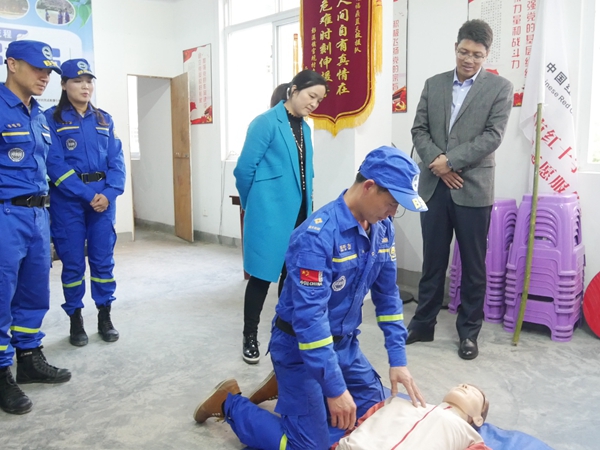▲考察福鼎市红十字应急救援志愿服务队(蓝天救援队)