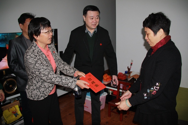 ▲省红十字会专职副会长毛文航(左一)入户慰问部分特困家庭
